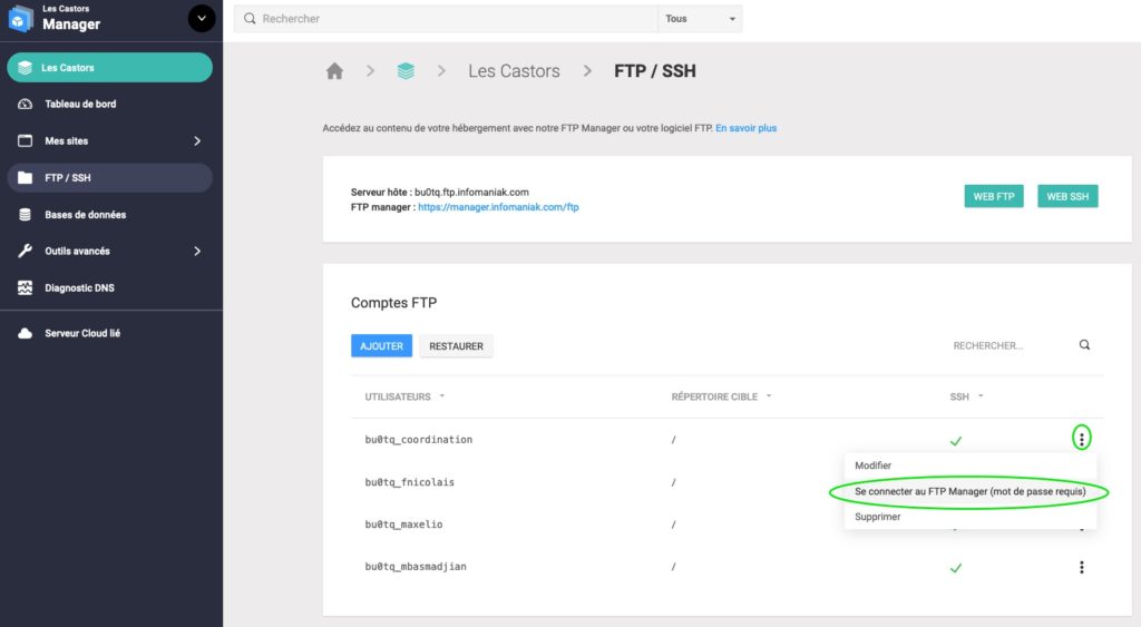- Avoir un compte FTP. Celui-ci est paramétrable sur le manager d’Infomaniak :